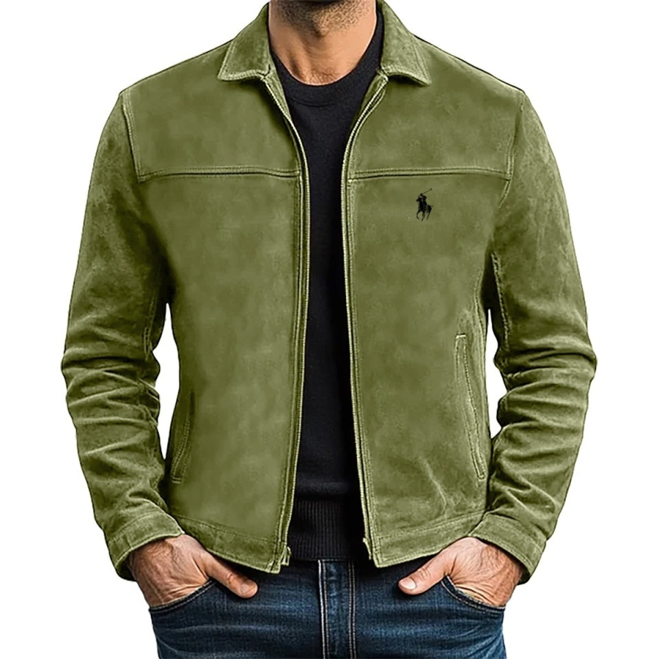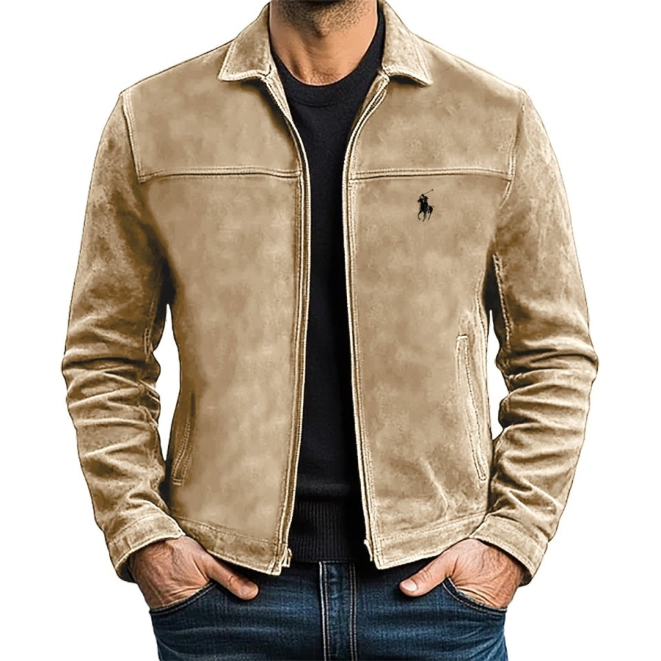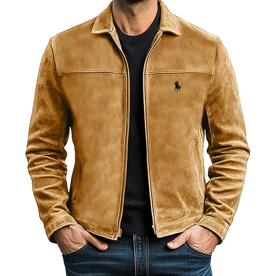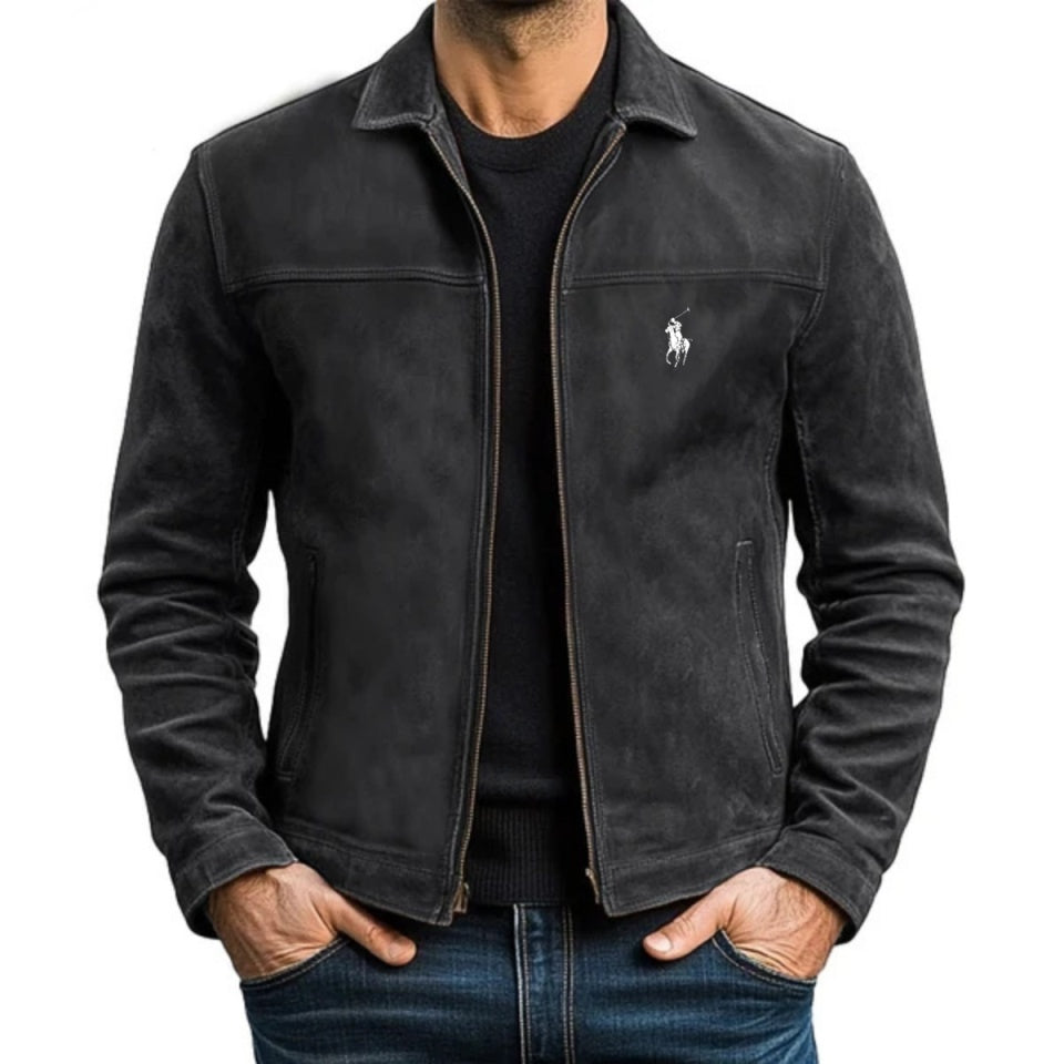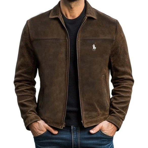 Rifinita con il nostro iconico Pony, questa giacca è realizzata in pelle scamosciata di medio peso e foderata con tessuto di cotone a spina di pesce.